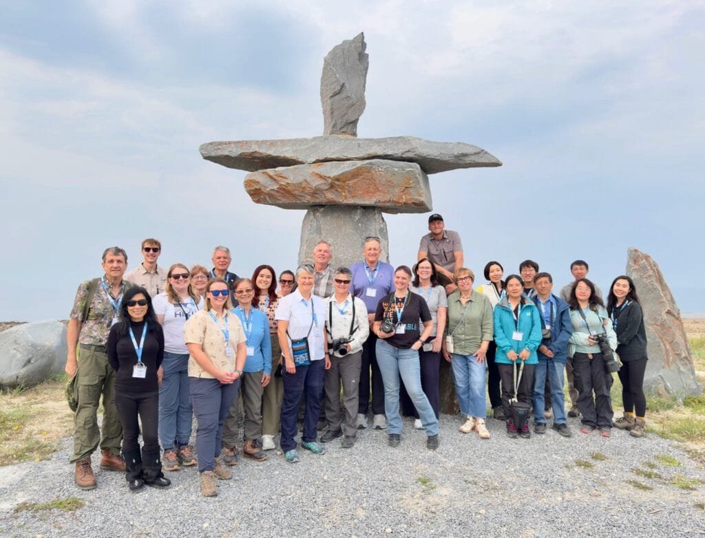 Because we spent so much time with the bear, the cultural aspects were postponed for another day. We did stop by the inuksuk, the traditional Inuit stone landmark shaped like a person and used across the Arctic for navigation, for a group photo.
