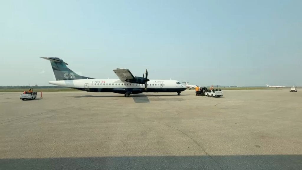 Our flight from Vancouver to Winnipeg offered stunning views over the Rockies (tip: sit on the left-hand side of the plane). Smoke haze blanketed Winnipeg as we landed, and our bags took forever to appear. When the bags finally started moving on the conveyor belt, ours was first down the chute, and I noticed the lock had been cut. Even stranger, the luggage was buzzing. Andy’s waterpik had somehow switched itself on. I imagine security had a very different scenario in mind when they opened that bag.
