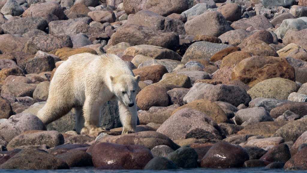 We spent two hours on the island, changing locations and seeing a total of four different bears. The time absolutely flew by. At one point we heard what sounded like gunfire. The captain radioed the guides to let them know that Inuit hunters were in the area hunting beluga. The idea of hunting whales really bothered me, but beluga numbers here are stable, and the Inuit use every part of the animal, taking only what they need. I was left feeling a little conflicted, but also aware that this is an important part of local tradition and survival.