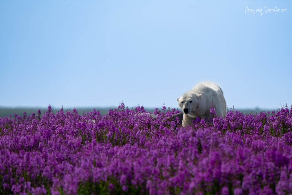 Within ten minutes we had found what we had come for: a polar bear framed perfectly in the fireweed.