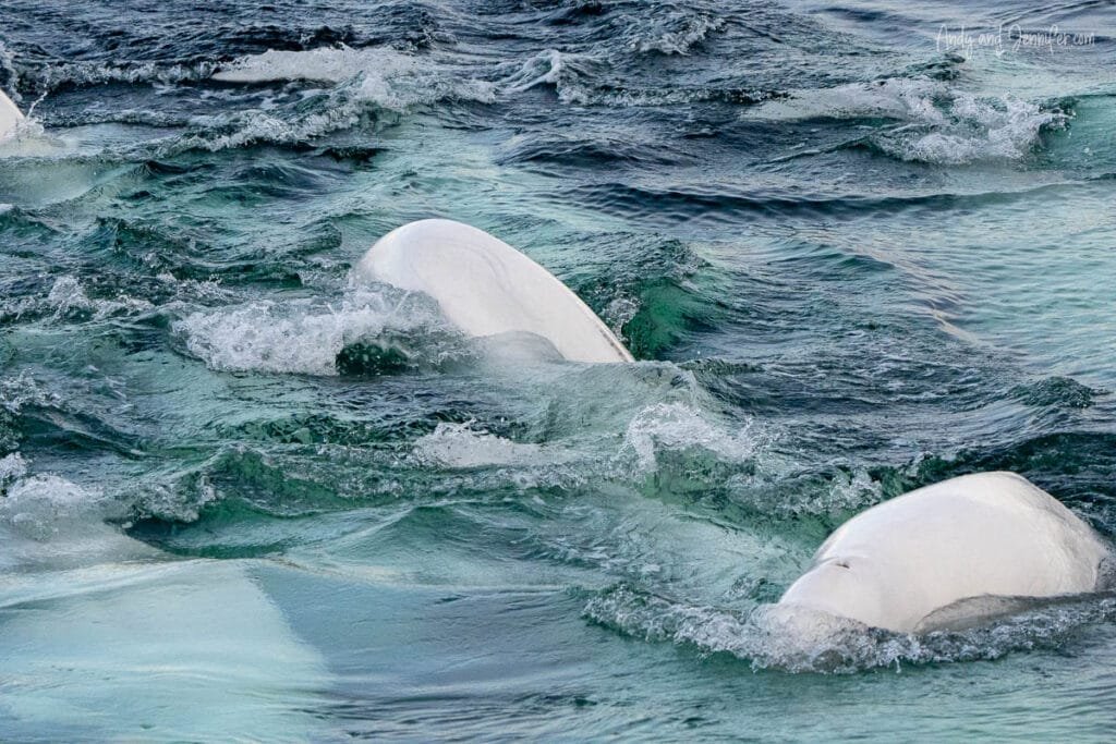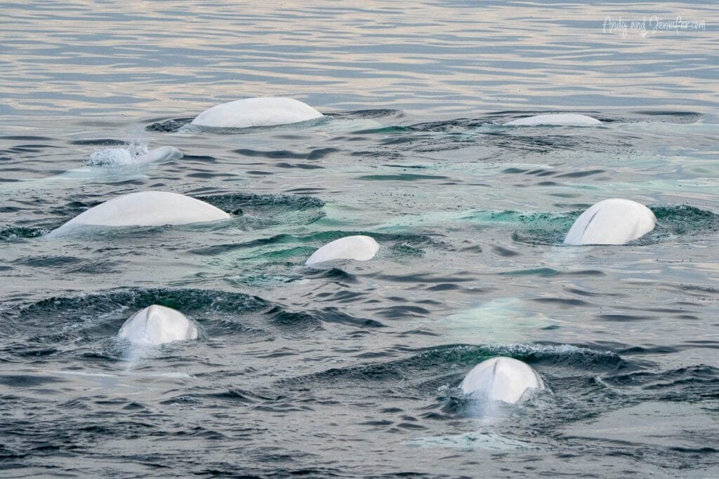 The mood on the boat afterwards was electric, everyone thrilled with their images and the experience. About an hour into the return journey, the captain slowed the boat. As with earlier, we recognised this was a signal of something good. Suddenly we realised we were surrounded by belugas. Hundreds of them.