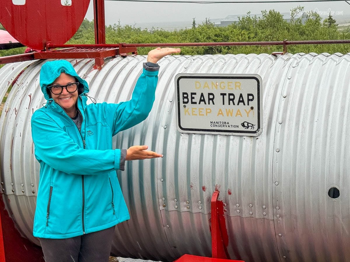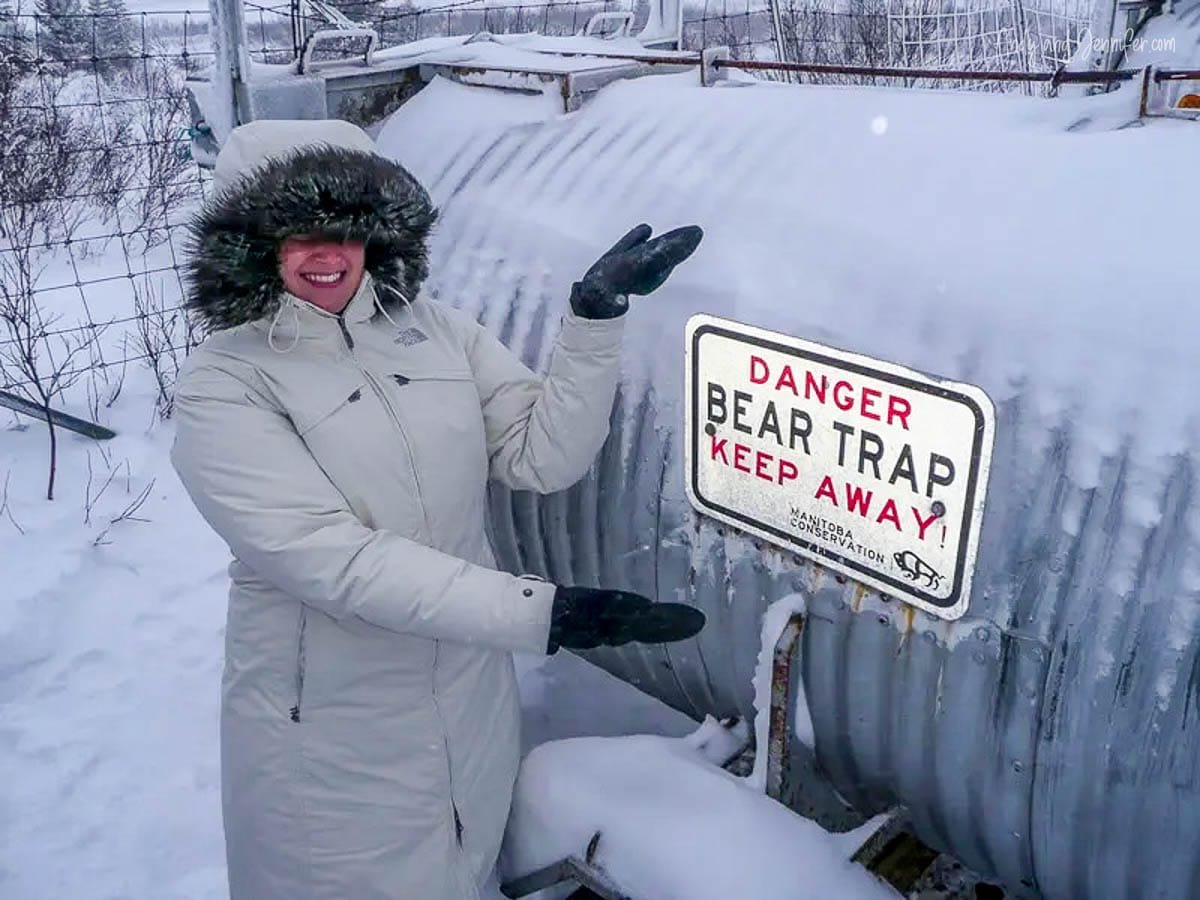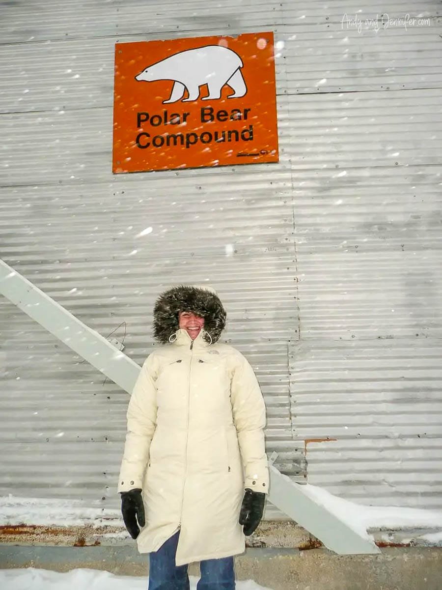 The next stop on the tour was the Polar Bear Holding Facility, nicknamed “Polar Bear Jail,” where problem bears are safely held in cinder-block cells for up to 30 days before relocation far from town, protecting both residents and the bears regardless of season. We visited here in 2008 so snapped a few “then and now” photos. Quite a bit of difference in temperature from August to November!