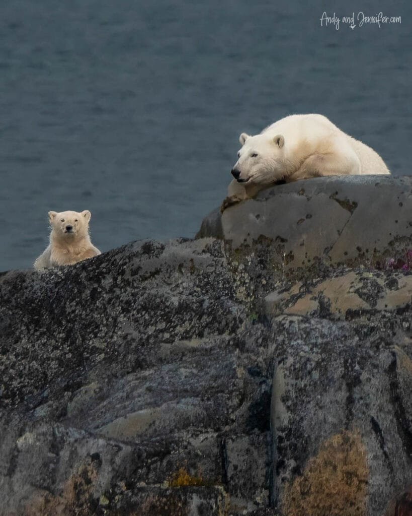 On our final morning we set out in a tundra crawler. Having done it in winter, I was unsure what to expect in summer, but was awestruck to find a mother and cub perched on rocks above the bay.