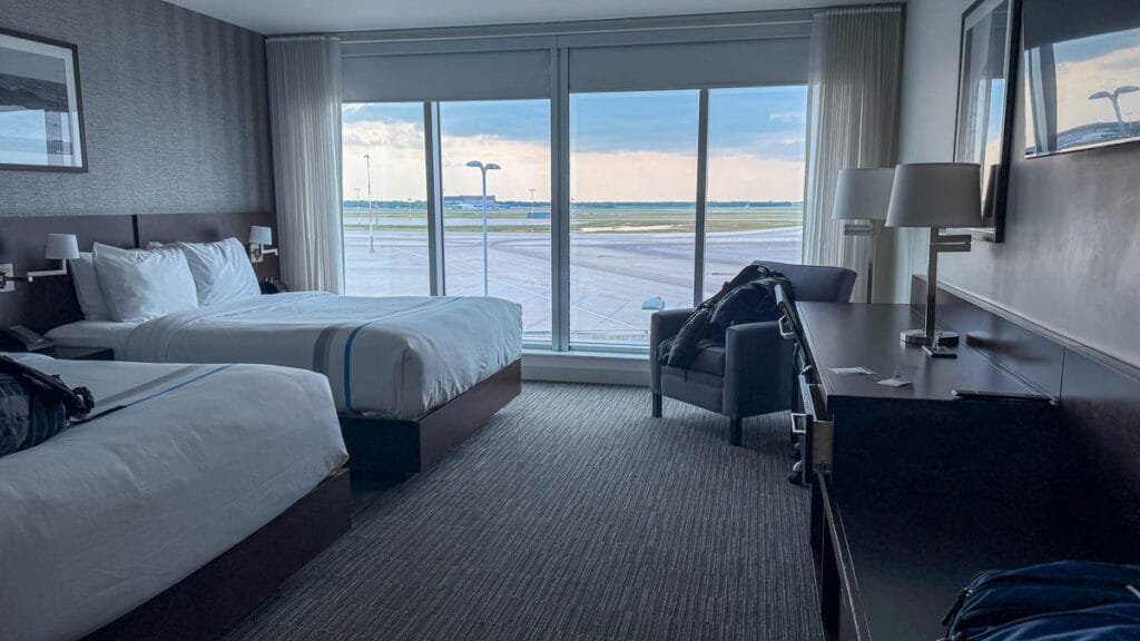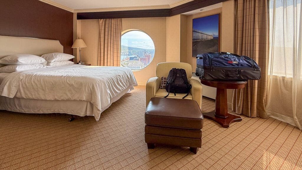 Our first stay was at the Sheraton Newfoundland. It is an older property, but our room had a small round window with a surprisingly lovely city view.