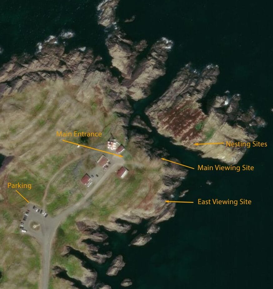 Just fifteen minutes from Elliston sits another excellent puffin location on the Bonavista Peninsula: the cliffs surrounding Cape Bonavista Lighthouse. While Elliston often gets the spotlight as Newfoundland’s best land-based puffin site, Bonavista quietly delivers fewer people and epic close encounters.